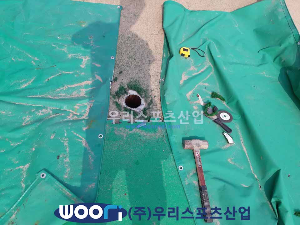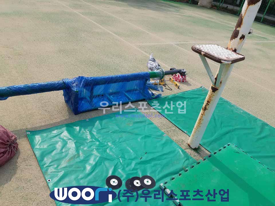 심판대는 이동식 모델이지만 현장에 요청에 따라 세트앙카로 고정해드렸습니다.
