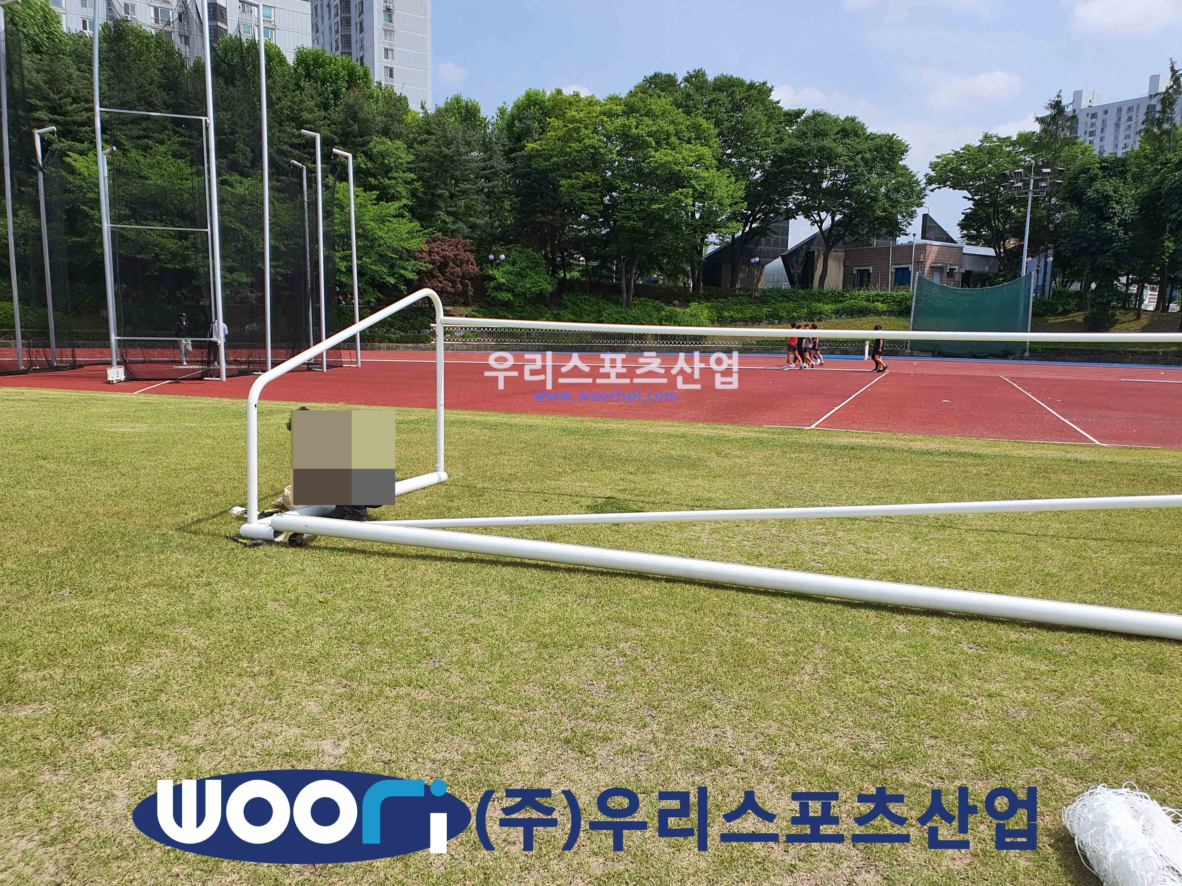 현장에서 새 가로봐와 주기둥보수와 축구골망 교체를 통해 새 축구골대처럼 변한 모습을 보실 수 있습니다