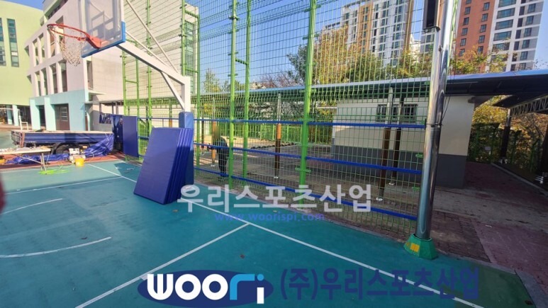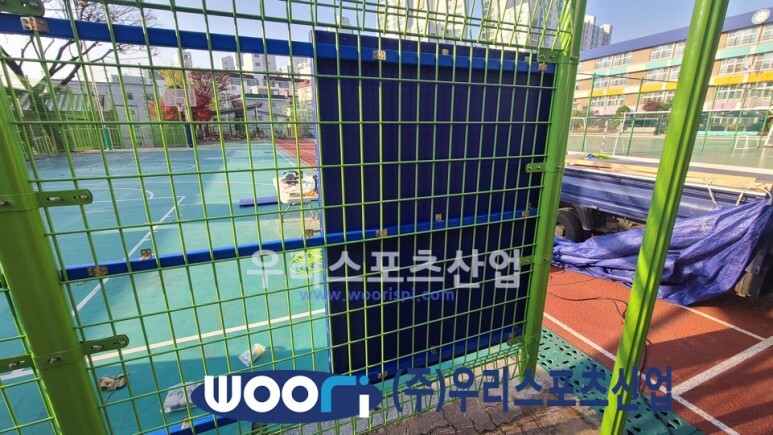 농구장 철재 휀스가 설치된 모습입니다.