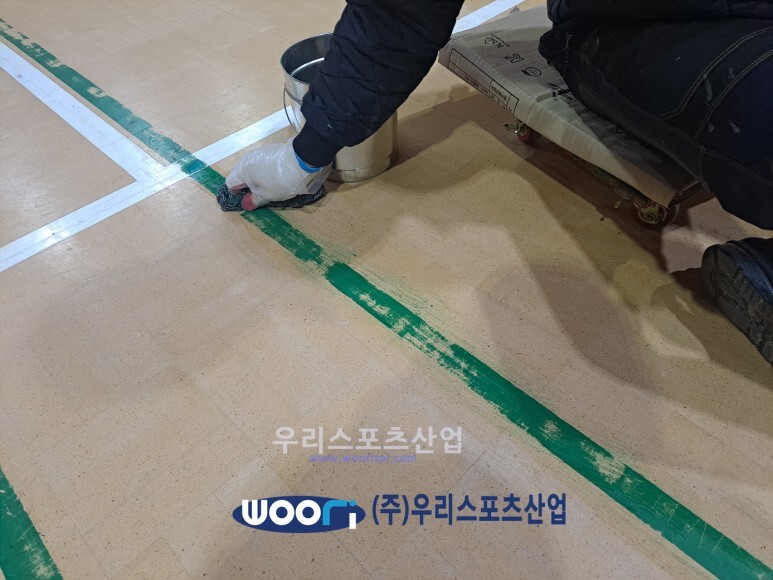 라인마킹, 바닥 샌딩 작업 후