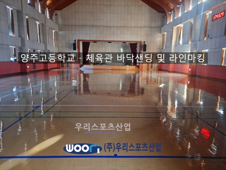 양주고등학교에 체육관 바닥 샌딩 및