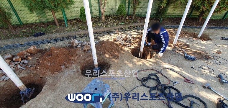 땅을 파고 철봉 기둥을