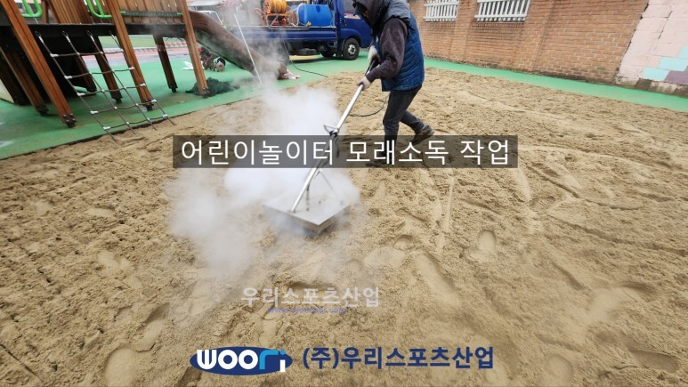 모래 소독 작업을 하였습니다.
