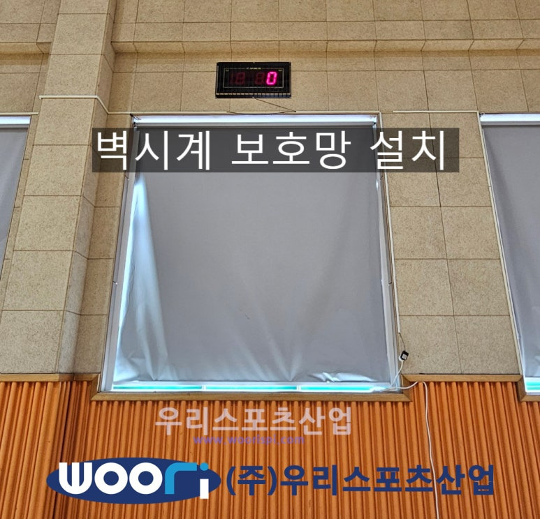 벽시계 보호망을 설치하였습니다.